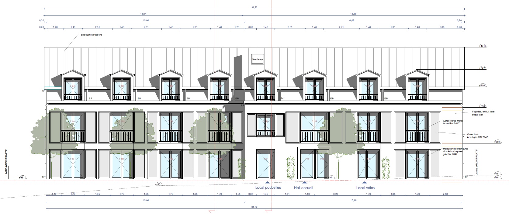 Construction d'un ensemble immobilier de 19 logements, situé au 1-3 rue Antoine à Bièvres (91510), réalisée sous la maîtrise d'œuvre du bureau d'études SBBM Ingénierie.