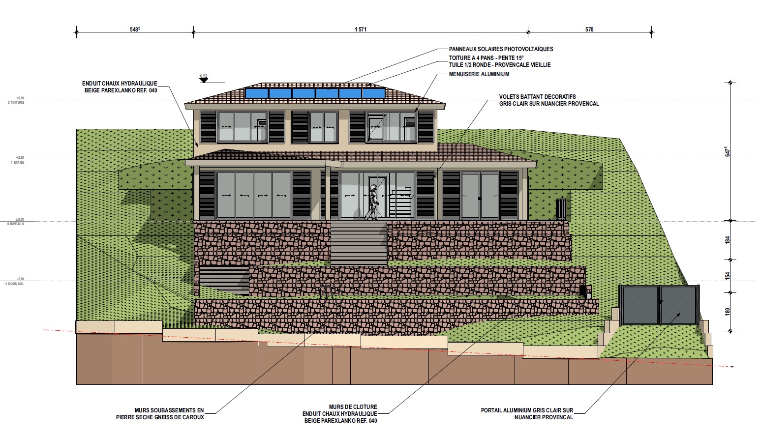 Construction d'une maison individuelle située au 4, avenue du Soleil à La Croix-Valmer (83420). L'étude technique est assurée par le bureau d'études SBBM Ingénierie.