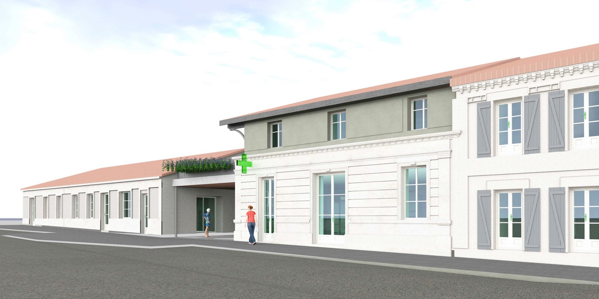 CRÉATION D'UNE PHARMACIE SUR LA COMMUNE D'AVENSAN (3 Place Saint-Pierre – 33480 AVENSAN) réalisée par SBBM Ingénierie